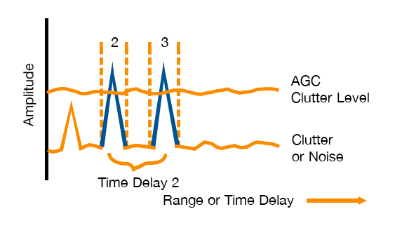 First it creates a cover pulse over the real target's reflection. It is much higher than the reflection of the real target. The surveillance radar reduces the gain in this range gate with electronic circuits at the radar receiver, in order to control the amplitude of the covered pulse. We call this Automatic Gain Control (AGC). The consequence of this cheat: the real target disappears below clutter level.